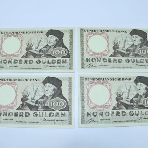 100 stykker Geldzuivering fra Nederlandene, 1945, katalognummer Pick 79. Klik på den blå "gå til varen" knap, for at købe eller byde på denne vare. Den samlede pris vil blive vist inden du afgiver dit bud.