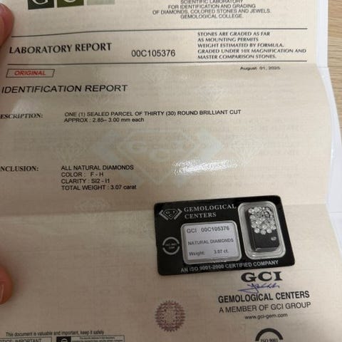 Diamanterne er naturlige, testet og forseglet.