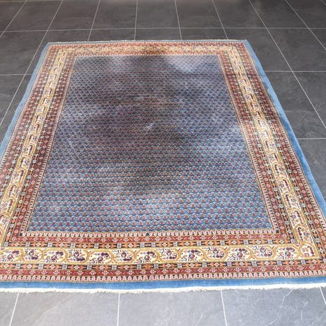 Indien håndknyttet tæppe på 305 x 80 cm, af uld på bomuld, rosa, fra midten af det 20. århundrede, vægt 8 kg, i god generel stand. Klik på den blå "gå til varen" knap, for at købe eller byde på denne vare. Den samlede pris vil blive vist inden du afgiver dit bud.