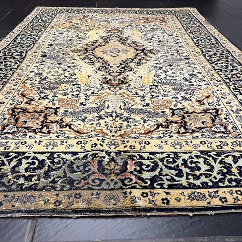 Oprindelsesland: Kina; beige uld-til-uld tekstil 95 × 65 cm, fra det 21. århundrede, vægt 3 kg, i god, omrenoveret stand. Klik på den blå "gå til varen" knap, for at købe eller byde på denne vare. Den samlede pris vil blive vist inden du afgiver dit bud.