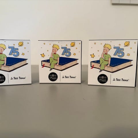 6 stykker af 5 og 25 euro, frihed, lighed, broderskab, 333% af penge og vægt på 7,3.