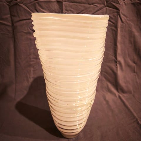 Vase fra glasmageriet La Fenice i Murano, halvfiligran med canne-teknik i rosa og hvide.