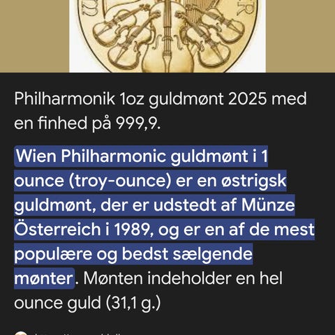 1/10 oz €10 Østrigske Philharmoniker i guld 9999, Brilliant Uncirculated, præget af Austrian Mint, tilfældig årgang. Klik på den blå "gå til varen" knap, for at købe eller byde på denne vare. Den samlede pris vil blive vist inden du afgiver dit bud.