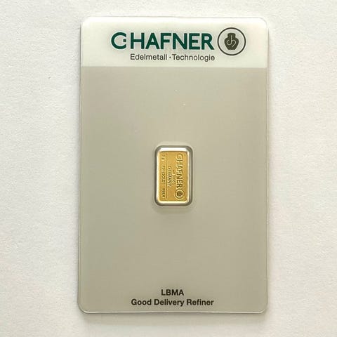 2 grams guldbarrer fra C. Hafner i Tyskland.