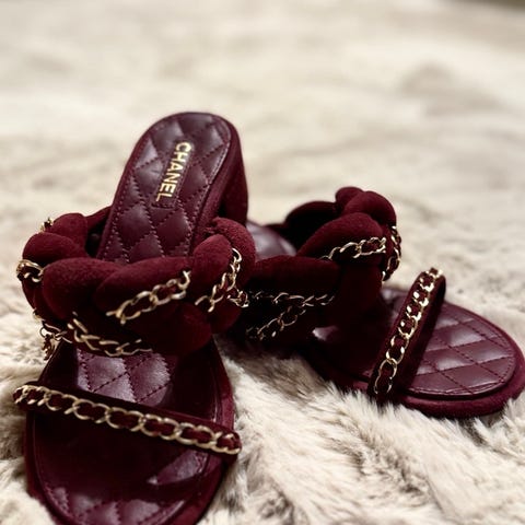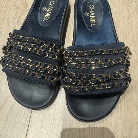 CHANEL Coco Mark Chain Mule sandaler til kvinder, størrelse EU 40.5, gråt læder med sort tå, aldrig båret, med dustbag. Klik på den blå "gå til varen" knap, for at købe eller byde på denne vare. Den samlede pris vil blive vist inden du afgiver dit bud.