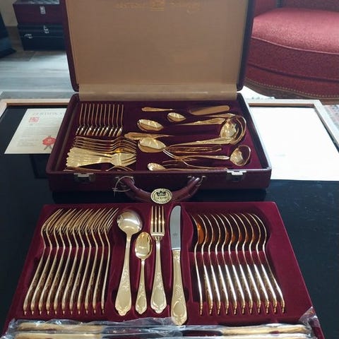 Præsentation: Sættet er komplet med sin originale etui, foret med silke og velour, med logoet fra den historiske forhandler i Vicenza.
