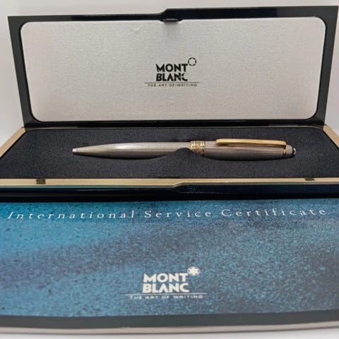 Montblanc, model Meisterstück Solitaire 144 Barleycorn Silver 925 med æske, lavet i Tyskland (slutningen af det 20. århundrede), i sølv 925 med mindre brugsspor og imperfektioner, i funktion, men kræver en blækpatron. Klik på den blå "gå til varen" knap, for at købe eller byde på denne vare. Den samlede pris vil blive vist inden du afgiver dit bud.
