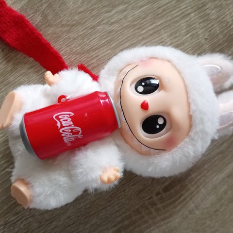 Den grønne har været brugt på en taske (aldrig i regnvejr og slet ikke nu her i dette vejr) og alt det, den har på, medfølger og er ikke helt som ny. Man kan godt se, den har hængt på en taske. Der er for ca 100 kr i tøjet alene, men sælger den billigt og byd gerne.
