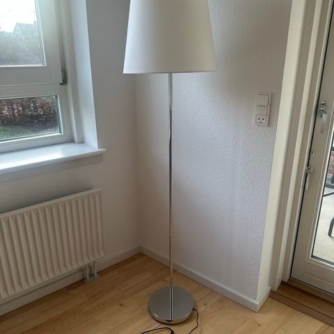 Den virker og skaber en rigtig hyggelig belysning. Og den har de her arme så skærmene kan drejes i alle retninger. Men det skal også siges at skærmene indvendigt har nogle mærker og fatningerne kunne trænge til at blive skiftet.