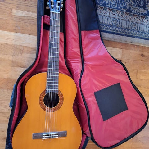 God ældre guitar fra Yamaha, model G-120A, ren og i orden, fra ikke-ryger hjem. Incl lidt tilbehør og en opbevaringstaske, som den altid har været opbevaret i imellem brug. Mangler en streng, men er ellers en god alm guitar.