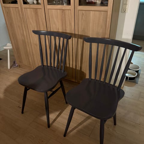 Smuk og enkel spisebordsstol produceret af FDB Møbler, udført i massivt træ og sortlakeret.