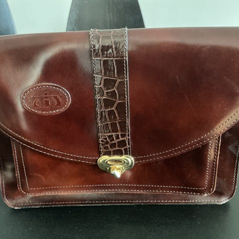 Håndtaske, ukendt, taske. l. 30 cm. h 24 cm. b 13cm rød med 2 rum