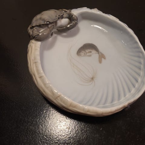 Royal Copenhagen Fad med fisk og krabbe i porcelæn