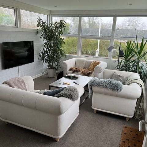To sofaer sælges fra et ikke ryger hjem. De er kun blevet brugt når der har været gæster, så er ikke slidte i betrækket. Sælges for 400kr. stykket.