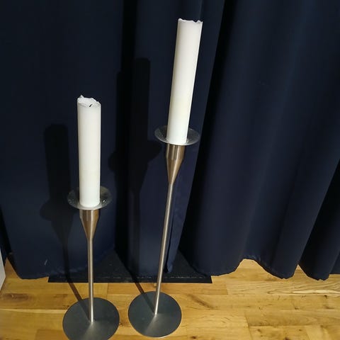 Poet Hein Saturn og Jupiter gulvstager i stål. Begge Maxi så hhv 80 og 65 cm høje.