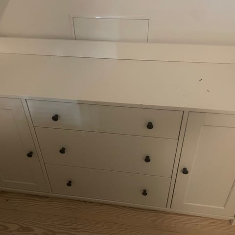 Ikea Kallax skænk med masser af god opbevaringsplads.