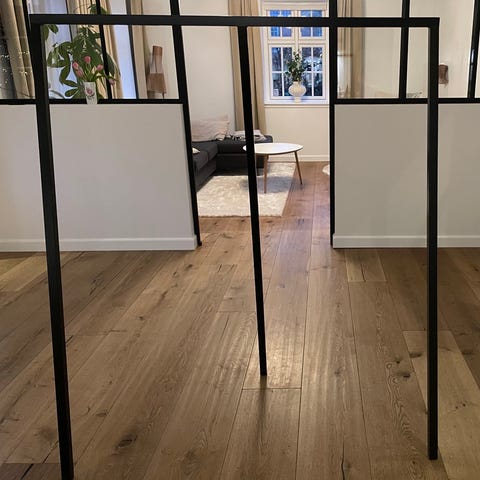 Er i god stand. Har været brugt og lakken er slidt enkelte steder pga bøjler. Det kan man ikke se, når der igen kommer tøj på. Kan også let repareres med metal maling. Hurtig afhentning foretrækkes.