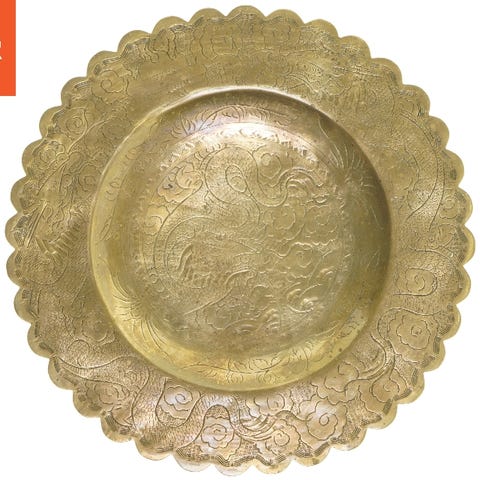 Messingfad med indgraveret mønster (str. Ø 23 cm)