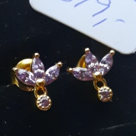 Smukke, feminine og elegante 18 karat forgyldt ørestikker/creoler udført i Sterlingsølv med smukt vedhæng med motiv af stjerner prydet med smukke lilla cubic zirkoner.