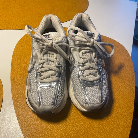 Nike børnesko til pige i størrelse 37. Skoene har forskellige designs og materialer, herunder åbne sandaler med velcrolukning, lukkede sko med huller til ventilation samt hjemmesko med blødt for og remme med spænde.