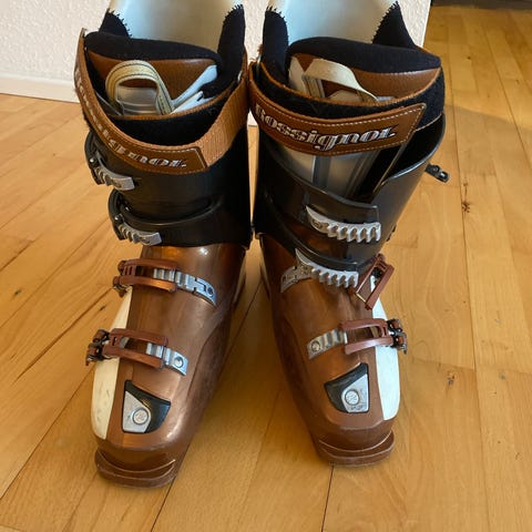 Rossignol Comp J skistøvler i sort farve med en størrelse på 334 mm. Skistøvlerne har fire spænder og er designet til at give støtte og komfort under skiløb.