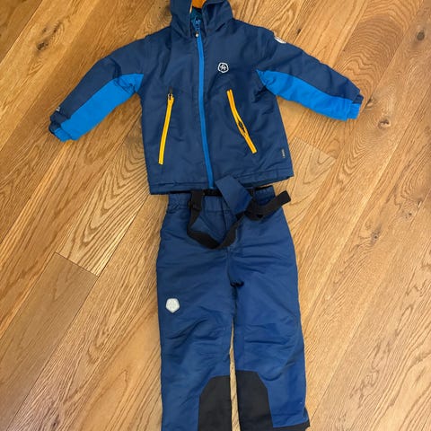 Skisæt til børn str 110-116. Der er en plet på bukserne.
