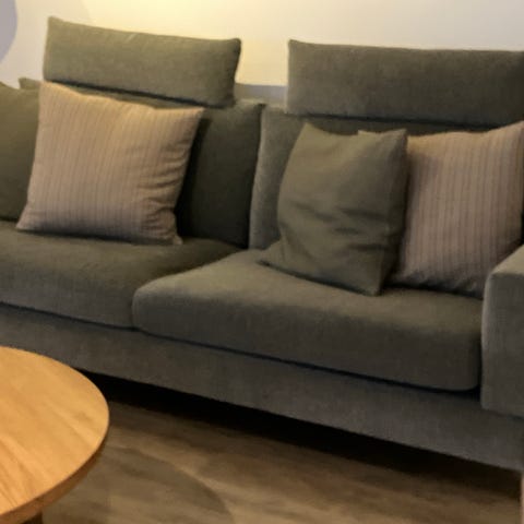 Sofa kan blive sovesofa slået ud 115 cm - fin stand bruges med puf eller du kan lave puf til en stol - den er rigtig fin