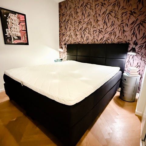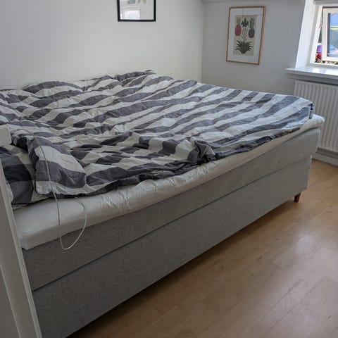 Vi fik sengen leveret som ny i februar 2025 og i får naturligvis kvitteringen. Gavlen er Jensen modellen Fenix Decor gavl på 180x125 cm. Madrassen er ekstra firm, men har stadig rigelig blødhed til os, som vejer 65-75 kg.