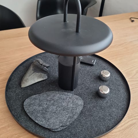 Helt ny sandfarvet Stelton lampe på genopladeligt batteri.
