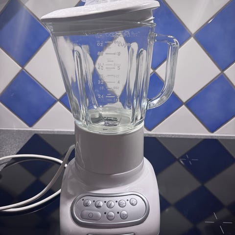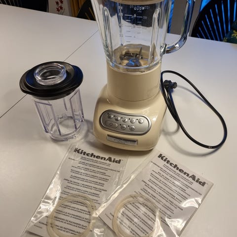 KitchenAid model Artisan modenummer 5KSB4026 blender kande i glas med sort låg. Sælges da jeg ikke har kunne finde kniven som reservedel så købt plastkanden i stedet.