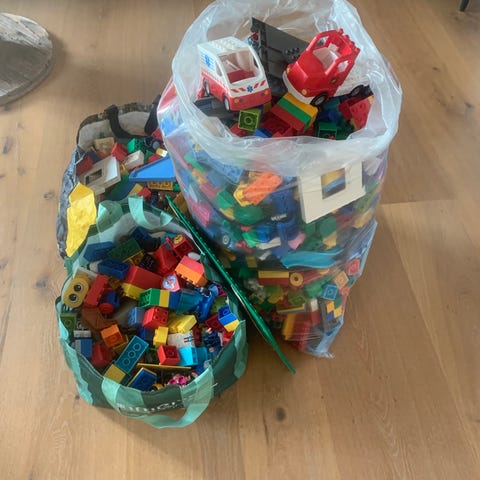 Hel kasse blandet Duplo med biler og dyr… tilgange timers underholdning
