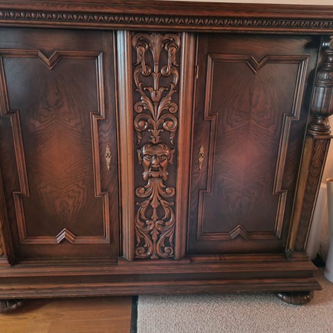 Jeg har haft skabet i mange år, og syntes det er smukt og personligt…men nu skal der lidt ro på farvepaletten herhjemme.