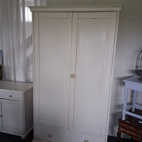 Hvidt vintageklædeskab med spejl