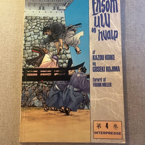 Kazuo Koike og Goseki Kojima Ensom Ulu og Kvalp bog illustreret af Ib Michael. Bogen indeholder grafiske fortællinger og er udgivet af Interpresse.