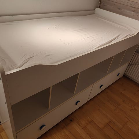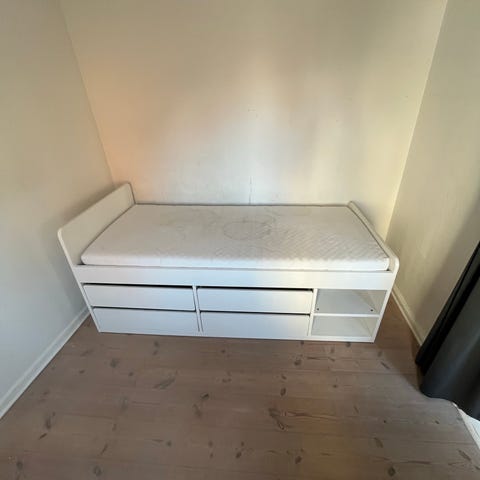Sengen står adskilt ved afhentning. Madras følger ikke med.