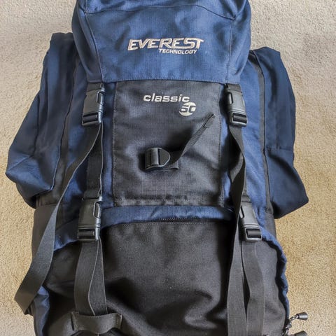 Everest rygsæk i grå. Rygsækken har justerbare stropper og mange lommer til opbevaring. Designet til at give støtte og komfort ved bæring.