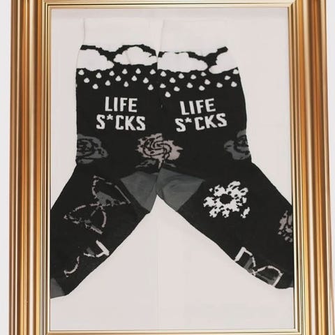 En æske med flere par sokker fra mærket Signal, pakket i en sort box med en gennemsigtig front, der giver et overblik over de forskellige sokker indeni. Sokkerne har forskellige farver og mønstre, der afspejler forskellige stilarter.