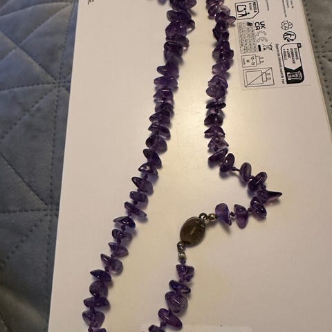 Halskæde, Flot halskæde, Sterling sølv med smykkesten, bl.a. ametyst og akvamarin. Kæde justerbar v/lås. Aldrig brugt.