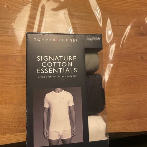 Tommy Hilfiger Bomuld T-shirt i størrelse XL til herre i hvid og sand, helt nye, ekstra slim fit.