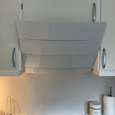 Power Emhætte Indbygningsmodel i hvid farve. Emhætten er designet til indbygning og har funktioner til effektiv udsugning i køkkenet.