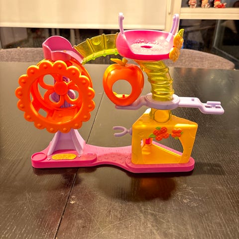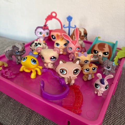 To gange legetøjssæt. Sættet med gyngerne er fra Litlle Petshop. Træet med gaven på og den lille træhule er fra Barbie.