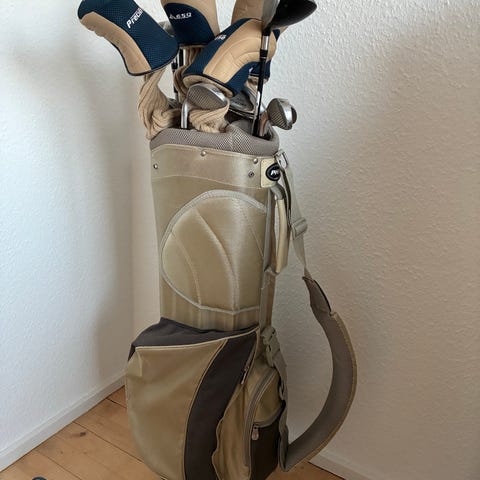 Sælger mit golfsæt, da jeg ikke længere får det brugt. Der er helt gamle jern, og er et super fint begynder sæt.
