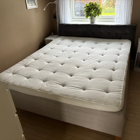 Boxmadras med sengeramme inkl. topmadras, rullemadras og to skuffer.