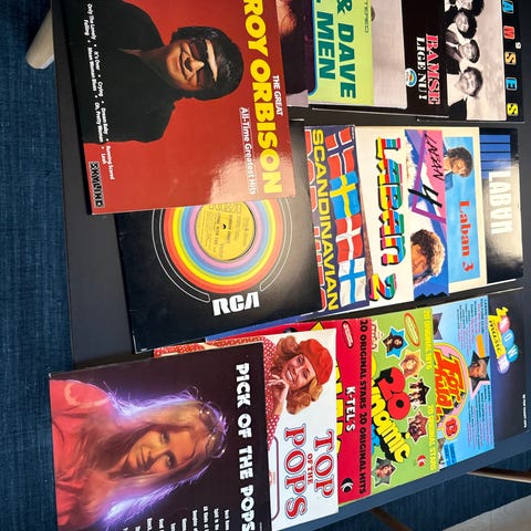 4 kasser af diverse vinylplader . (235stk)Pladerne indeholder forskellige musikgenrer og kunstnere( rock, pop, blues mv) . Pladerne er brugte og varierer i stand