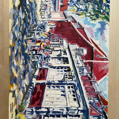Plakattryk af billedkunstner Palle Mernild. Motiv Skagen Fiskerestaurant.