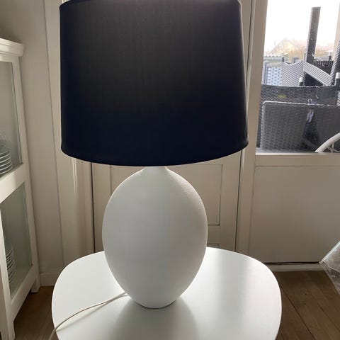 Bordlampe fra ILVA. Hvid skærm, mat glas som fod. Fremstår som ny