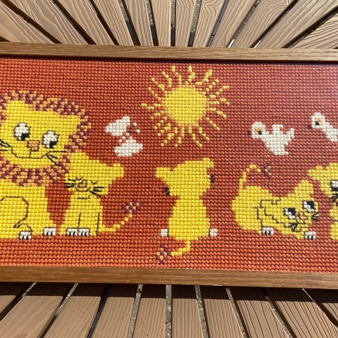 Broderet billede af stjernetegnet løven, Fint broderi.