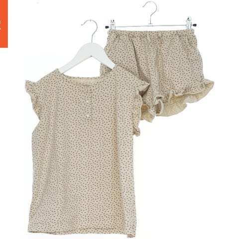 Langærmet bluse i brun farve med motiv af en hund på forsiden. Blusen har en enkelt designet ryg og synlige syninger ved ærmernes kanter. Velegnet til børn og har ingen synlige størrelsesmærker.