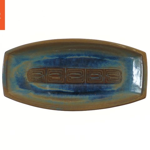 Denne keramiske skål fra Søholm Bornholm har et indvendigt motiv med et farverigt sejlskib. Skålen er sandsynligvis håndlavet, hvilket ses på den unikke glasering og det særprægede design. Bunden af skålen viser mærkningen 'Søholm Bornholm Made in Denmark', hvilket indikerer dens oprindelse og kvalitet.