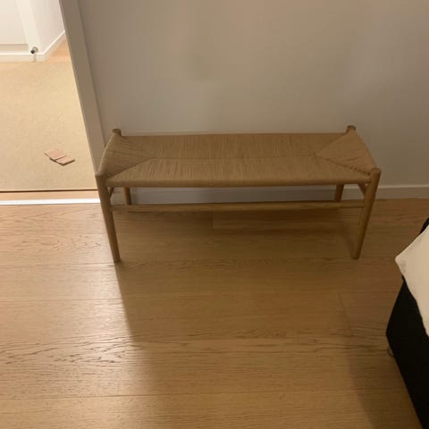 Klassisk J83B bænk i hvid, købt i FDB Møbler på Frederiksberg. Stået til pynt.